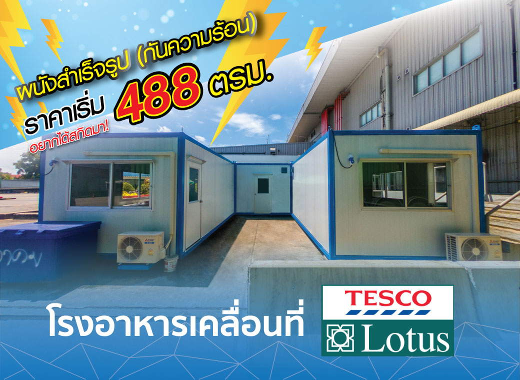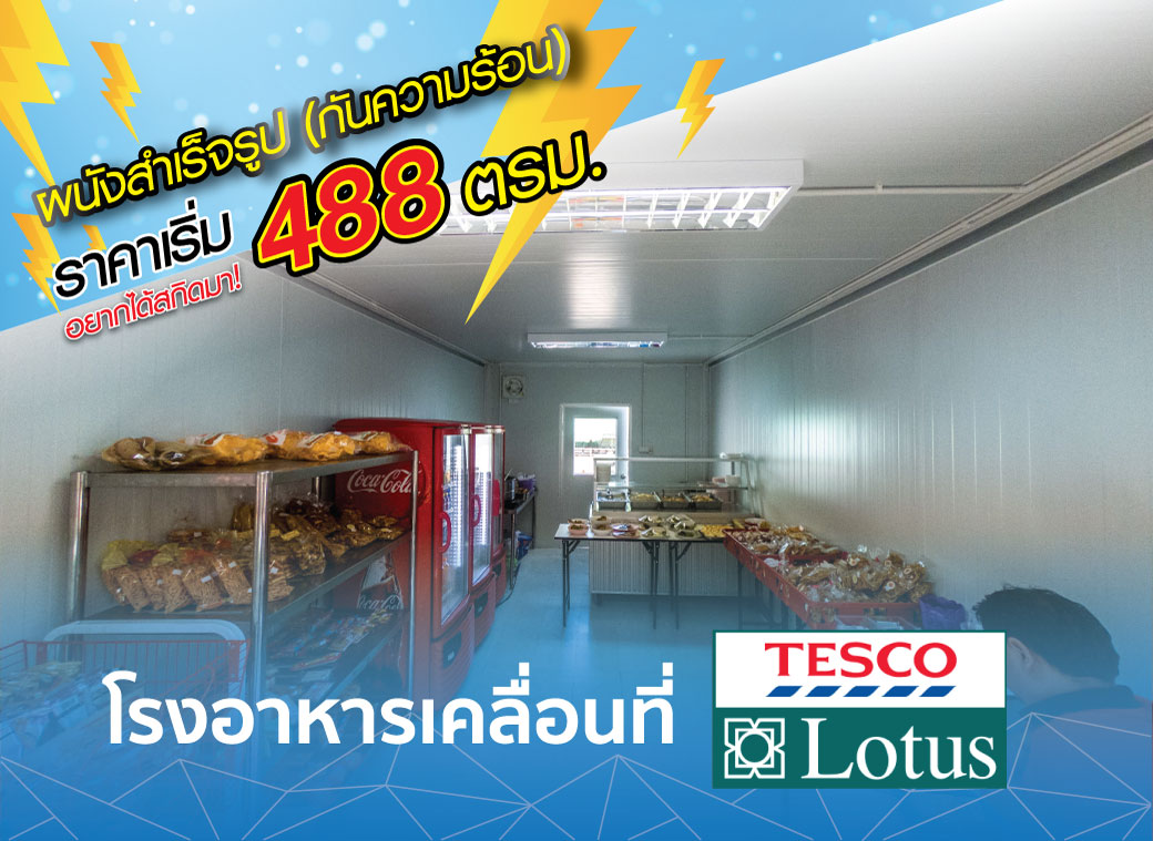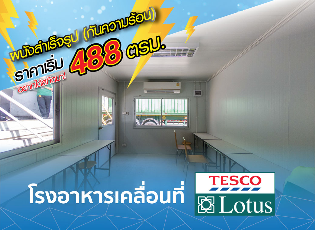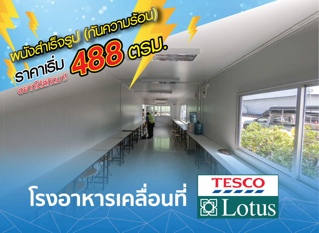 งานสร้างโรงอาหารเคลื่อนที่ด้วย ผนังสำเร็จรูป แผ่นฉนวนสำเร็จรูป (โลตัส สาขา วังน้อย)
