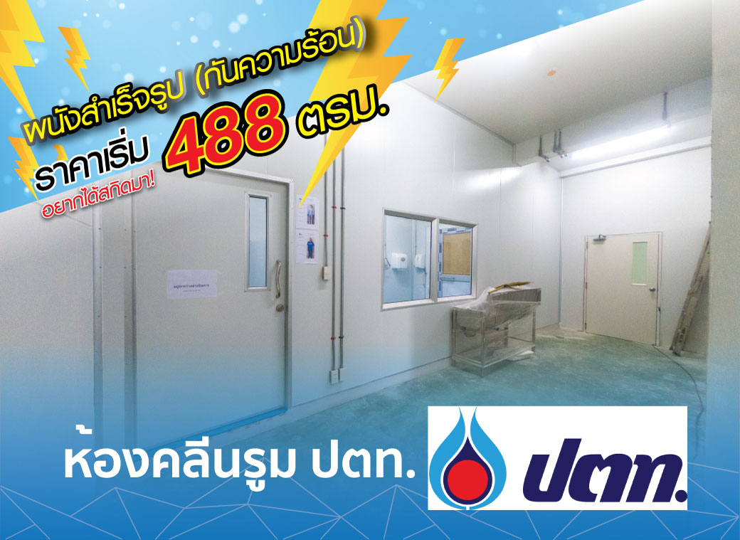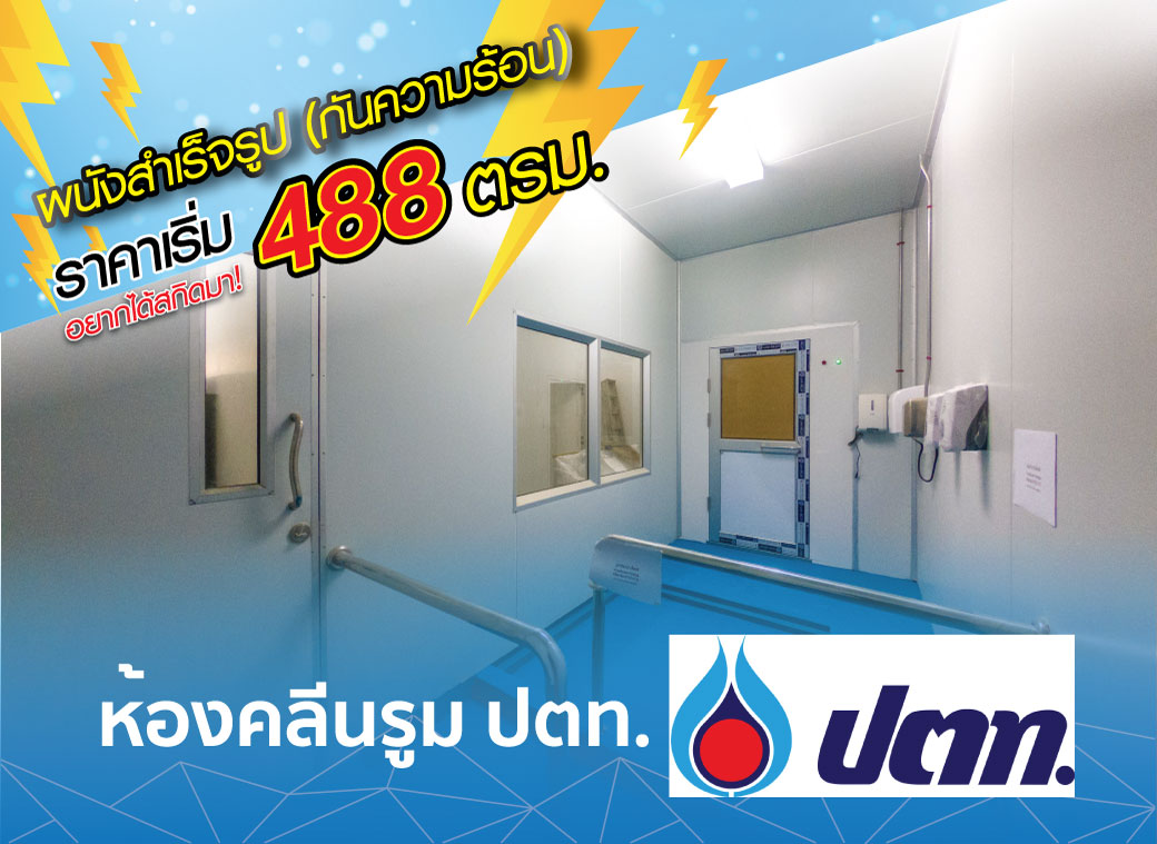 งานสร้างคลีนรูมด้วย ผนังสำเร็จรูป แผ่นฉนวนสำเร็จรูป ( โดย ปตท. )
