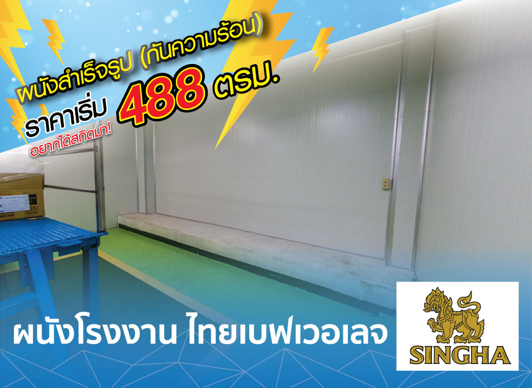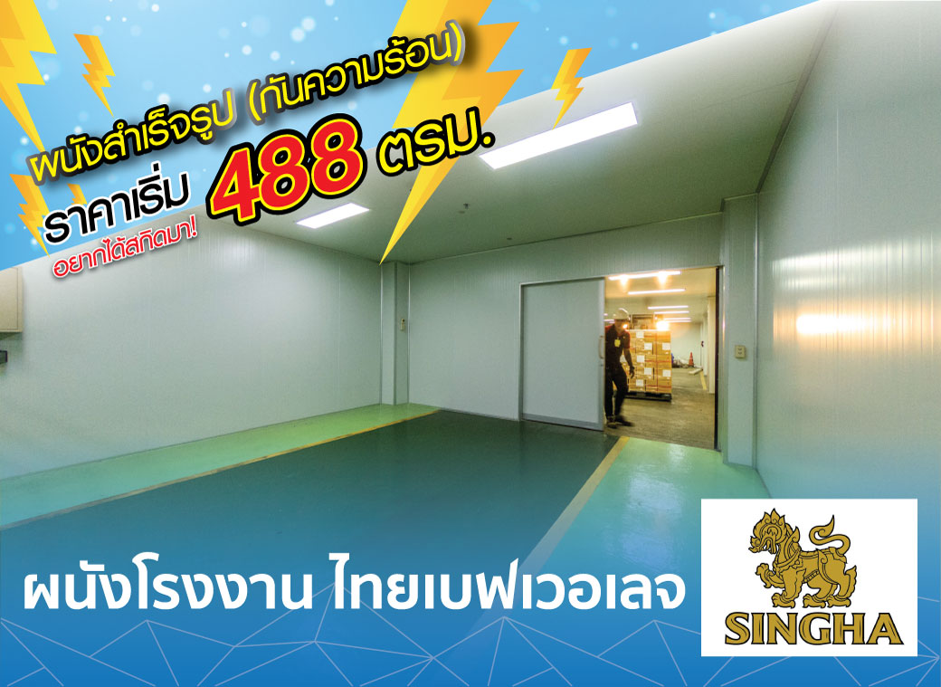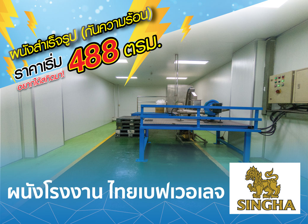 งานกั้นผนังโรงงานด้วย ผนังสำเร็จรูป แผ่นฉนวนสำเร็จรูป ( โดย บริษัท สิงห์ คอปอเรชั่น จำกัด มหาชน )