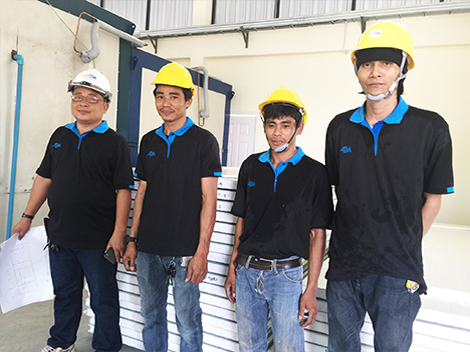 Engineer and contractor in ACWALL INTER GROUP CO.,LTD. pass training about safety and training about their work. In every our project have skillful engineer control work about install insulated panel.